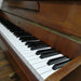 A compact 85 key piano in a light brown mahogany casing in smart condition.A medium rich tone with sustain and mute pedals.