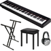 Digital grand piano with 88 triple-sensor hammer-action keys in a compact format suitable for home, studio or stage performances. Sound is delivered through base-mounted stereo speakers or from 2 headphone outputs under the keyboard itself. A choice of 12 internal voices can be selected with options for variable keyboard split or dual layering, thanks to the 189-note polyphony. An inbuilt DSP section offers a selection of reverb, delay and chorus effects, which can be saved with sound settings in 2 user memory banks. Note keys double up as edit keys for all settings and functions, resulting in a clean and uncluttered control surface. An accompaniment section has a choice of 12 different drum patterns, which can be used along with a record-loop function for practice. In addition, the NPK-10 has 20 internal demo songs. USB connection to a computer sends and receives MIDI for recording and playback. MIDI and audio can also be wirelessly transmitted via Bluetooth®, which can also be used in conjunction with the "Piano Mate" app for self tuition and exercises. A damper pedal is included, which connects to the 6.3mm pedal jack on the rear panel. An Aux input is provided for backing tracks and main stereo line outputs for connecting to a PA system, monitors or recording device. A comprehensive digital piano with multiple features in a minimalist, portable format.