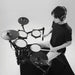Complete digital drum outfit with mesh drum pads mounted to an adjustable rack stand. 3 tom pads and 1 snare pad each have dual triggers for side-stick and rim-shot effects. Hi-hat, crash and ride pads each have edge and bow-shot zones and can respond to hand chokes for realistic muting. A pressure-sensitive remote pedal performs gradual closing of the hi-hats. A separate kick pad and pedal assembly provide a natural feeling bass drum trigger. All triggers are wired back to the main sound module, which has a large accessible control surface and backlit display. A total of 15 drum sound sets are included with an adjustable reverb effect. Audio 6.3mm jack output to a mixing console or drum amplifier can be either mono or stereo and a separate stereo 3.5mm jack is provided for headphone monitoring. A built-in drum coach function is useful for improving technique from novice to professional standard. The internal adjustable click track or 10 internal demo songs are provided for general jamming. Alternatively, backing tracks may be played via the Aux line input or wireless Bluetooth® connection to play along with your own music. An inbuilt record function is also added to check back on your own playing. The convenience of a minimalist, lightweight kit with the flexibility of multiple sound sets, and still keeping a natural playing experience for real feel and expression.
