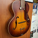 A hollow design with F-holes, a mahogany body topped with solid spruce and a retro vibe all around: the Gretsch G9555 New Yorker Archtop embodies classic '50s style. Here, the whole nine yards include a faux tortoiseshell scratch-plate, open-gear Grover machine heads, a period-correct trapezoid tailpiece. The grand auditorium-style body of the Gretsch 9555 helps to forcefully project a full foundation sound with outspoken lows and mids, while the solid top only further intensifies the sound and weaves extra warmth. Hooked up to an amp, the tone of the vintage-style single-coil pickup can be tweaked using a no-fuss volume pot, preparing the sound for any style ranging from jazz to acoustic pop.