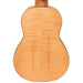 The Lake Maple Series Soprano Ukulele with stunning appointments that include a figured flame maple top, back and sides, wood bindings, intricate faux abalone rosette design, capped heel, okoume neck, ABS nut, walnut capped headstock, walnut fingerboard with pearl inlays, black walnut bridge and gold plated die-cast machine heads with black buttons is indeed, dressed to impress.